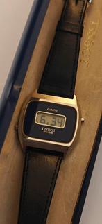 Vintage tissot-horloge van het zwitserse merk. Jaren 80. Stalen behuizing, blauwe wijzerplaat. Originele gesigneerde armband. Het