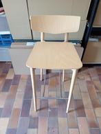 Te koop: 8 stevige barkrukken in lichte houtkleur, met rugleuning en metalen voetensteun.stijlvol en comfortabel, ideaal voor een