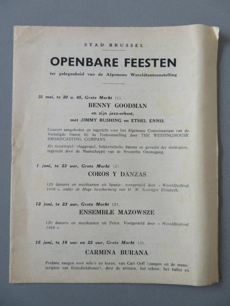 Stad Brussel openbare feesten programma Ned/Frans Expo 58