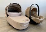 Auto- en wandelstoel cybex cloud t i-size en de reiswieg priam lux carry cot (met regencover), zonder onderstel. Beiden in nude be