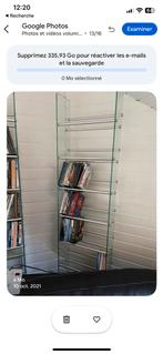 Bibliothèque en très bon état. Fabriquée en verre épais et transparent et en métal. 1 Seul 35€les 2 pour 62
