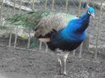 Kleurijke en majestueuze blauwe pauw te koop met mooie pronkveren die van diepblauw tot groen en goud kleuren. Niet geleewiekt, regelmatig ontwormd. Geboortejaar: 2023.