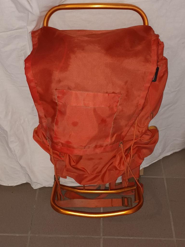 Lichtgewicht trekking rugzak. Aluminium buizen en handige opberg tassen. Kleur oranje