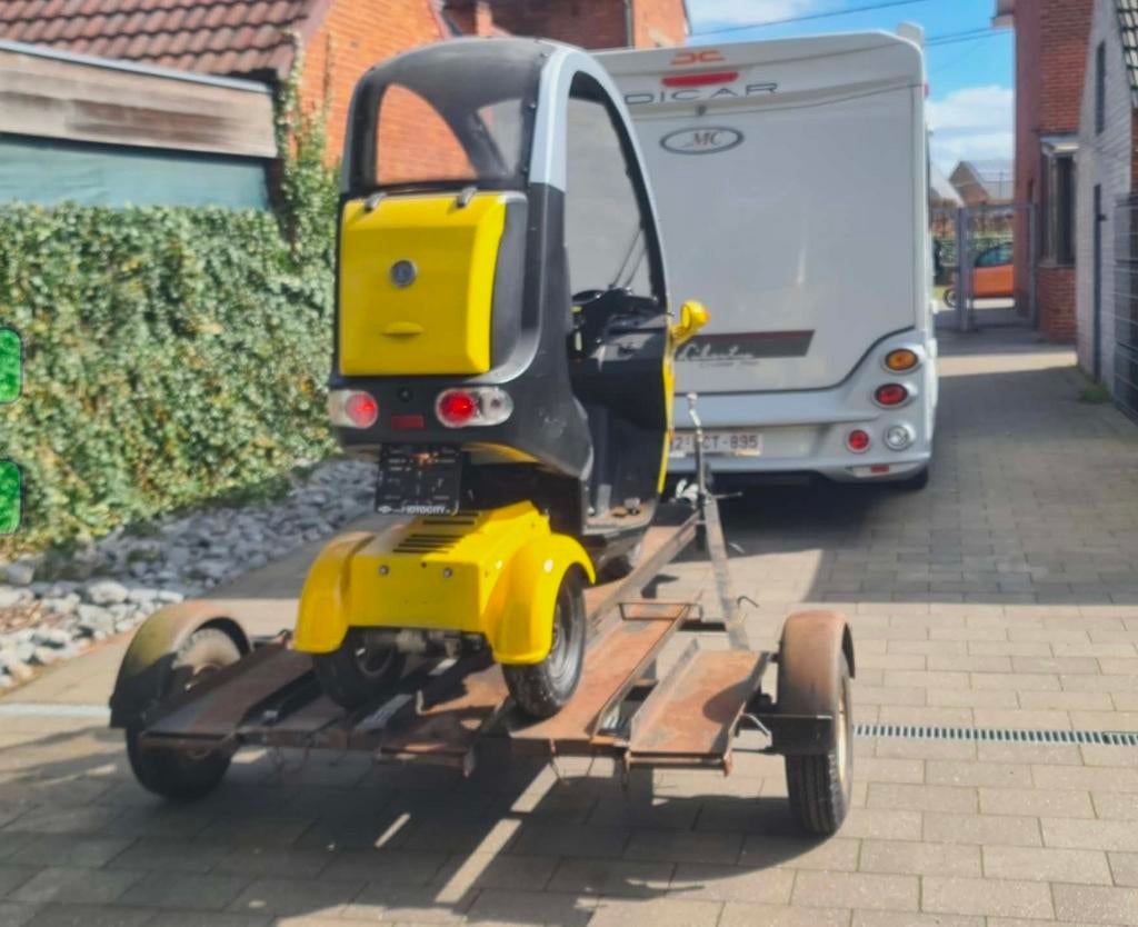 .aanhanger geschikt voor het vervoeren van een trike, can - am of driewieler. De aanhanger is in gebruikte staat, maar functioneert naar behoren. Ideaal voor het transporteren van uw voertuig naar eve