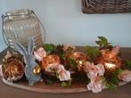 Houten plank,windlicht en theelichthouders, bloemetjesslinger en haasje het geheel voor 10euro, afhalen in humbeek grens nieuwenrode