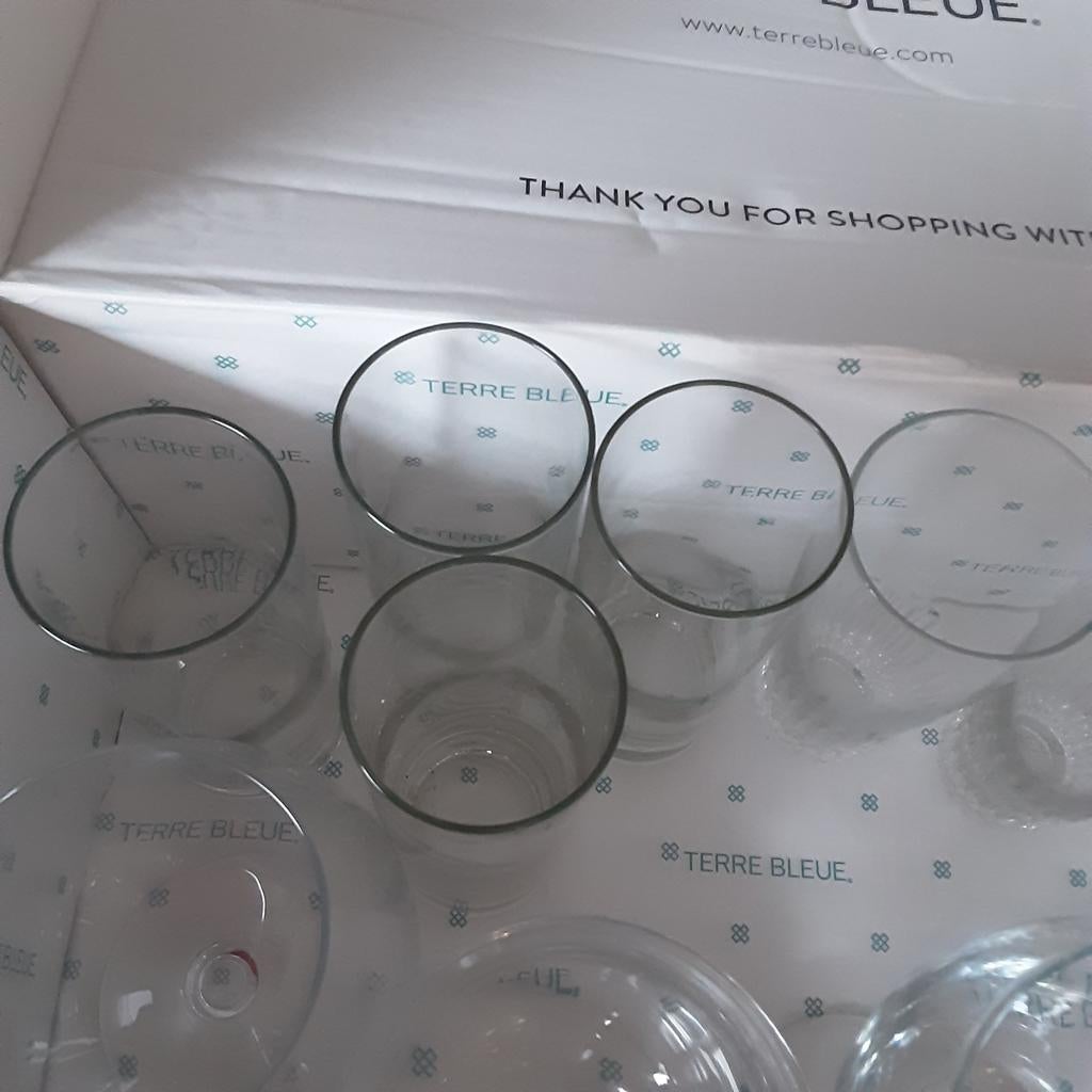 Doos met verschillende glazen in perfecte staat