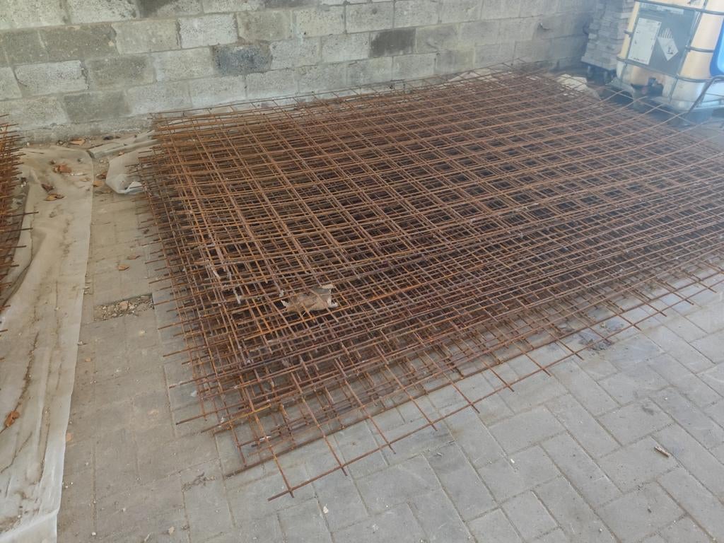 Betonnetten 42 stuks van 3000 x 2000 x 6mm,mazen 15 x 15 cm, betonnen afstandshouders ongeveer 300 stuks inbegrepen in de prijs