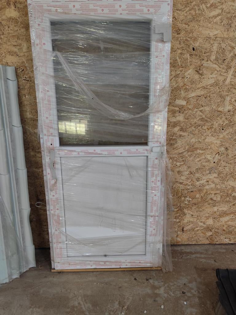 Buitendeur pvc, antraciet grijs,half beglaasd,210 x 98 cm,nieuw gekocht bij ramenhal voor 585,00€(te checken op hun site) nagelnieuw in de verpakking