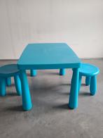 Leuk blauw tafeltje met 2 krukjes leuk voor de kinderen om aan te kleuren of spelletjes te spelen, te puzzelen... (Extra krukje be