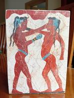 Antieke, met de hand gemaakte griekse fresco-replica van het "boksende kinderen" fresco. Oorsprong : het originele fresc