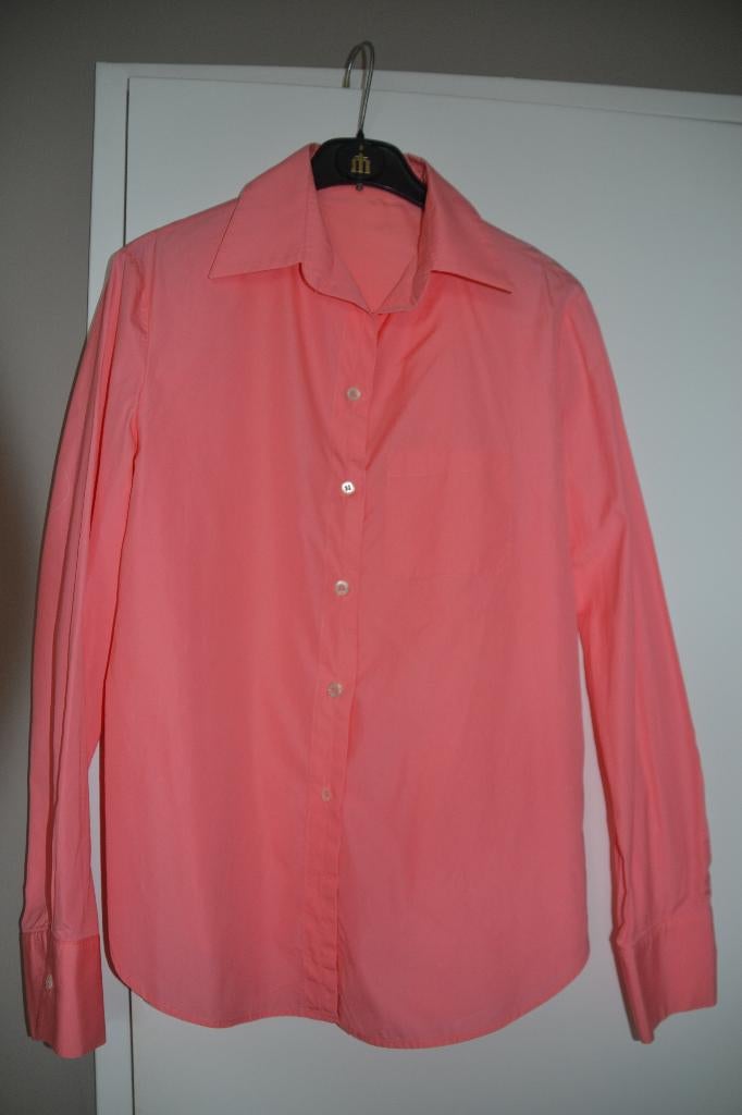 Zalmkleurige bloes van het merk boss (etiket is verwijderd) in zeer fijn katoen. Mooie knopen. Zeer aangenaam om dragen. Maat : b 42 d 38 i 44 oksel tot oksel plat gemeten : 49 cm lengte : 67 cm