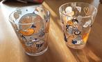 Vier plastiek bekers van okay met leuke afbeeldingen.