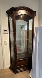 Mooie elzen noten patina vitrinekast met verlichting. De kast is 102 cm breed, 32 cm diep en 201 cm hoog. De achterkant van de kast heeft een spiegel, de bodem ook. Te koop tegen elk aannemelijk bod.