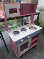 Speelgoedkeukentje met accessoires zoals bordjes, bestek, kopjes, groenten,.... Afmetingen zijn: h=90cm l=60cm b=30cm met lichte gebruikssporen maar nog in goede staat. Vaste prijs: €10