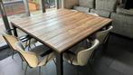 Eettafel vierkant uit steigerhout met volgende afmetingen: 160 cm x 160 cm. Kleurframe zwart structuur mat. Steigerhout (oliebeitsbehandeling + extra schuurbeurt olm). Nieuwprijs: 1.565 Euro