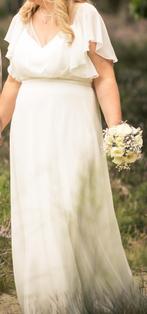 Trouwjurk voor iets bredere dames. Maat 42/44 en aanpasbaar. Geen stress als je iets slanker wordt of bijkomt. Ikzelf ben 1.75 Cm groot en droeg hakje