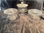 3 drie antieke glazen voorraadpotten in verschillende uitvoering - zonder gebreken. Eventueel ook los te koop. 1. Hoog: 22 cm - do