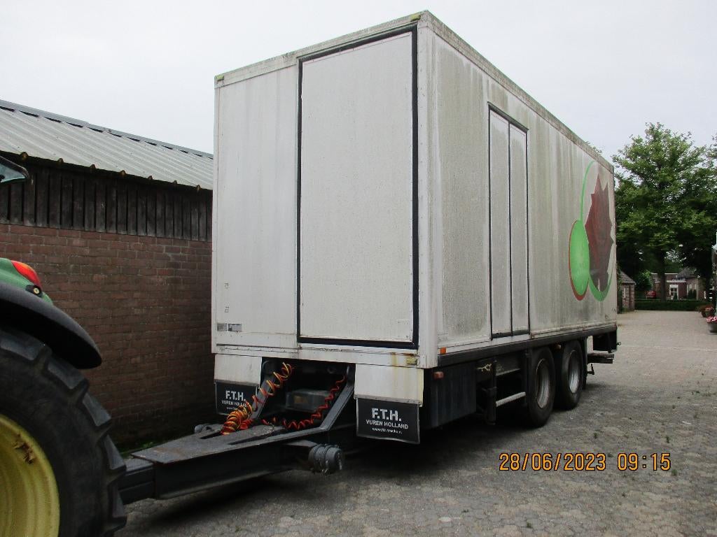 Geisoleerde water dichte aanhanger ongeveer 700 x 250 x 260 , draagvermogen 18 ton totaal er zijn geen papieren meer bij en de aanhanger is hier hoofdzakelijk gebruikt voor opslag van zaagmeel de bode
