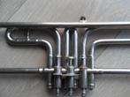 Oude ventieltrombone uit het weense systeem. Vernikkeld messing in zeer goede staat: de ventielen werken goed en het instrument is bespeelbaar zoals het is. Origineel mondstuk aanwezig.