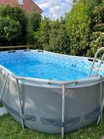 Groot zwembad met filter en trapje. Nog in zeer goede staat. In juni gekocht en slechts twee zomermaanden gebruikt.