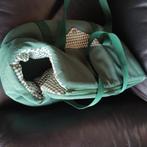 Groene/ groen geruit: hondendraagzak, merk joys, kleine + middel grote hondjes uitneembaar kussentje wasbaar op 30° afmetingen: ho