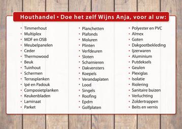 MDF OSB OSB3 kanada canada populier unifix maro garden valirol hpl trespa terrasplanken composiet tuinhout thermowood triple verfdeur panlatten tengelatten sneeuwlatten kepers ijzerwaren multiplex bruggen balken meranti timmerhout meubelpanelen zoldertrappen verluchting "gescheiden riolering" isolatie verandaplaten geulen putdeksels dakgootbekleding goten golfplaten epdm lood koepels dakvensters sloten scharnierenplinten lijsten moluren chambranten parket tuinschermen "Rood Noodse den" douglas eik triplex planchetten plafonds keukenwerkblad toezichtsputten terugslagkleppen goot " zinken goten" glaswol xps zoldertrappen muggegaas muggezift frake fakro velux