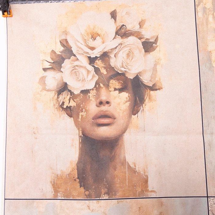 Dit fascinerende decoratieve textiel presenteert een collectie van 9 unieke vrouwelijke portretten, geïnspireerd door de hedendaagse esthetiek, artistieke fotografie en digitale kunst. Elke figuur bevindt zich in een delicate balans tussen realistische gezichten en abstracte bloemcomposities, met een palet dat varieert van crème- en goudtinten tot puur wit, aangevuld met levendige accenten van rood en oranje. Het resultaat is een evocatief en verfijnd paneel, perfect voor elegante interieurs, meubelgalerijen of auteursmatige textieltoepassingen.Afgedrukt in hoge definitie op gobelintapijt met fluwelenffect, combineert dit stuk materiaalelegantie met schilderachtige suggestie, en roept het de stijl op van vrouwelijke en symbolistische hedendaagse kunst.Totale afmeting: 143 x 143 cmGemaakt van 9 panelen van elk ongeveer 47 x 47 cmZachte polyester stof met gobelin-effect – high-definition afdrukFluweelachtige textuur, middelmatig dik, bestand tegen slijtage.Beschrijving van de gezichten (van links naar rechts, van boven naar beneden):Vrouw met een gezicht verlicht door lichte bloemen en een gouden achtergrond: een poëtisch portret tussen zuiverheid en spiritualiteit.2. Gezicht bedekt met crèmekleurige bloemen en gouden penseelstreken: symbool van tijdloze gratie en delicatesse.Vrouwelijk profiel met effect van vloeiboor goud op het gezicht: gouden esthetiek en intense introspectie.4. Centrale portret met grote witte bloemen: stille sensualiteit en visuele kracht.5. Gezicht bedekt door een explosie van kleine witte bloemen: metafoor van verborgen schoonheid en harmonie.Donna met beige bloemengirlande en abstracte achtergrond: soberheid en elegantie in balans.Vrouw met een gigantische bloem op haar oog: diepe emotie en levendige schilderachtige details.8. Portret met bloemige compositie en gouden bladeren: natuurlijke en dromerige sfeer.Vrouw met rode lippen en gekleurde bloemen: levensenergie, passie en chromatische intensiteit.Ideaal voor:Artistieke decoraties, muurpanelen, weefkunstwerkenKussenhoezen, design tassen, exclusieve woondecoratie.Showroom, boutique, luxe omgevingen en creatieve ruimtesCadeau-ideeën voor verzamelaars en liefhebbers van vrouwelijke beeldende kunst.OnderhoudstipsZacht wasprogramma op 30°CStrijk met de verkeerde kant tot 150°CGebruik geen bleekmiddelen om de kleuren te behouden.Verzending:Levering via koerier binnen 3 werkdagenBeschermende verpakking om de integriteit tijdens het transport te waarborgen.Opmerking: de stof wordt geleverd zonder randen, zooms of kaders. De beelden zijn professionele fotografische opnames; eventuele kleurverschillen zijn afhankelijk van de schermcalibratie.Deco Italiaans DesignItaliaans bedrijf met meer dan 20 jaar ervaring in de productie en verkoop van artistieke meubelstoffen. Geïnspireerd door stromingen zoals Art Nouveau, hedendaags symbolisme en vrouwelijk surrealisme, combineren onze panelen kunst en functionaliteit voor ruimtes met karakter en verfijning.-stof, textiel, tissu, tkanina, tela, stof, tecido, tyg, látka, kangas, estur, pëlhurë, , szövet, dúkur, fabraic, ehuna, , , , , , papanga, , , structuur, fabricae, zijde, wol, biologisch katoen, vezel textiel, weefsel, tkaniny, tkanina, textielweefselinterieurdesign, woningdecoratie, design, ontwerper, kunst, kunstwerk, dipinto, quadro, acquerello, opera, artistiek, fornasetti, guernica, picasso, pablo, vrijheid, art nouveau, art déco, antiek, antiquariaat, zeldzaam, oud, brocante, vintage, landelijk, eclectisch, chique, glamour, Franse elegantie, panama, Frans, Italiaans, Spaans, oosters, Aziatisch, Afrika, jungle, bloemrijk, hert, herten, deer, deers, capriolen, daini, bambi, paarden, olifanten, luipaard, aap.tapestry, gordijnen, tafelkleed, kussen, kussens, kussens, sofa, stoel, bed, parça, canovas, frey, Frey Brocante, standbeeld, statuette, museumoro, argento, bronzo, ivory, green, decò, fold, rare,cadeau-idee, cadeau, cadeau, kerst, kerstmis, cadeau-ideeën
