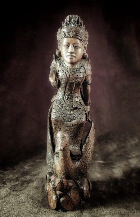 Uit een particuliere collectie uit Indonesië, Saraswati op haar zwaan gesigneerd door A Fatima, in hardhout, 30 × 12 × 9 cm, begin twintigste eeuw, in uitstekende staat.