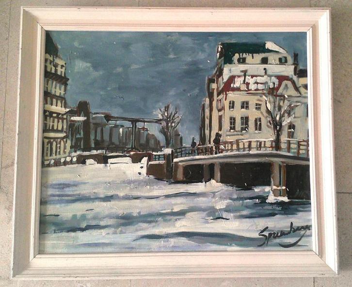 Olieverf op doek 50x60, rechtsonder gesigneerd Spreeuwenberg, gedateerd 1996 (op a.z.) in witte lijst.