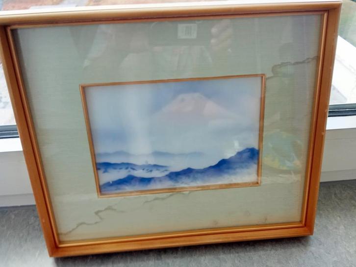 Handgeschilderd schilderij met signatuur. Ik ken de schilder niet. Het schilderij is geopend en binnenin het schilderij staan een stempel en een signatuur. Maat 45 lang en 55 breed. Schoon en zonder gebreken.