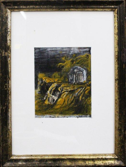 Graham Sutherland Grotta uit 1942 in olie en mixed media op karton, 17,5 x 15,8 cm, ingelijst; authenticiteit bevestigd door een foto van de kunstenaar.