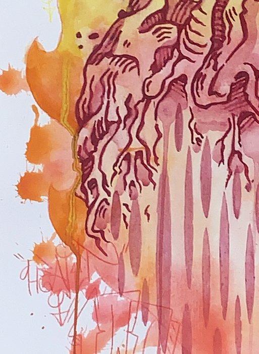 La 180 presenteert heart 04 in originele editie, een aquarel street art werk uit 2025 met handtekening en opvallende oranje rood geel tinten, 50 x 35 cm.
