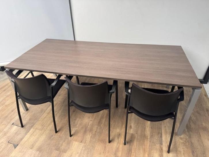 Deze Q-line vergadertafel is er een uit het gebruikte assortiment, deze tafel kan dus wat lichte gebruikssporen hebben maar hier is de prijs ook naar. De tafel heeft een aluminium kleurig frame dat bestaat uit 2 U-poten met daartussen een balk voor de stevigheid, deze balk kan ook gebruikt worden als kabelgoot zo kunt u uw kabels gemakkelijk weg werken. De tafel is in hoogte verstelbaar doormiddel van een inbus in de poten. Let op zoals eerder benoemd is dit een gebruikte tafel en deze kan dus gebruikssporen bevatten, bekijk hiervoor altijd goed de foto’s. De tafel in het echt komen bekijken? Dit is mogelijk in onze showroom.
