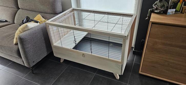 Het konijnenhok is van hout met een uitneembare pvc bak dat het gemakkelijk maakt voor het onderhoud.