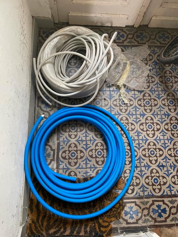 Twee rollen flexibele installatiebuizen, ideaal voor elektrische installaties of leidingen. Beide zijn nieuw en ongebruikt, afkomstig van een overgebleven klus.