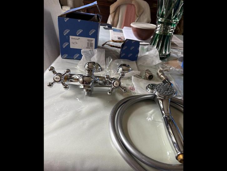 Grohe Sinfonia kraan, compleet met alle benodigde installatieaccessoires. Reden voor verkoop: Douche-installatieproject. De prijs van de complete set was meer dan €500; het was een hoogwaardige Grohe-serie
