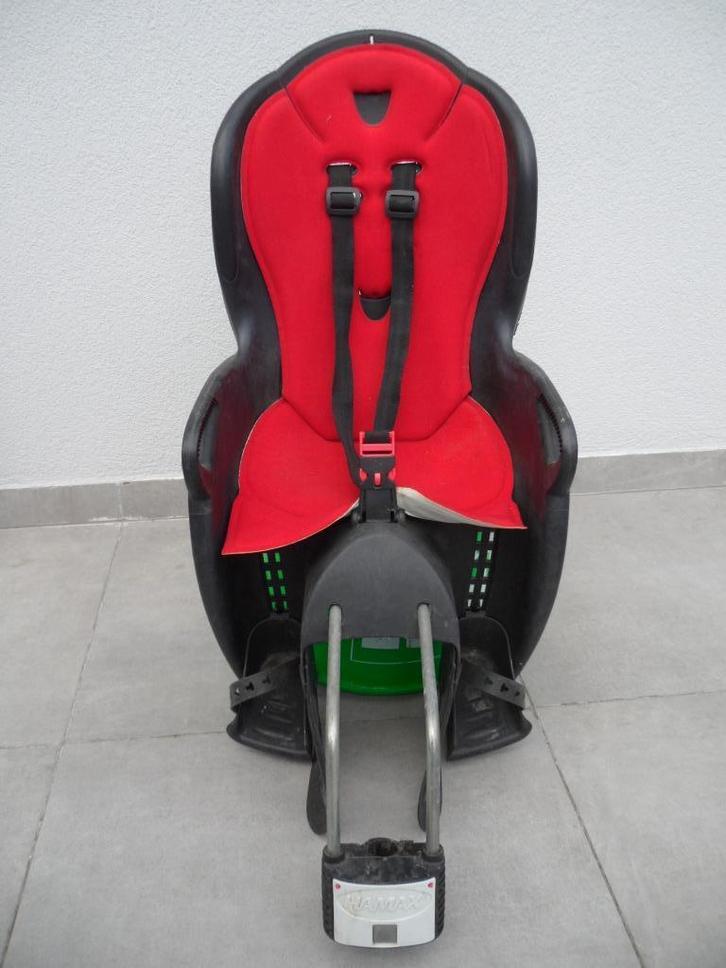 Siège vélo enfant en très bon état. Réglage en hauteur des ceintures et des repose-pieds. Réglage du siège en avant ou en arrière par rapport au point de fixation ceci pour s'adapter à tous les vélos et morphologie des enfants. Fixation au tube de selle. Siège clipsable ou détachable de sa base de fixation rapidement. Prix 40€