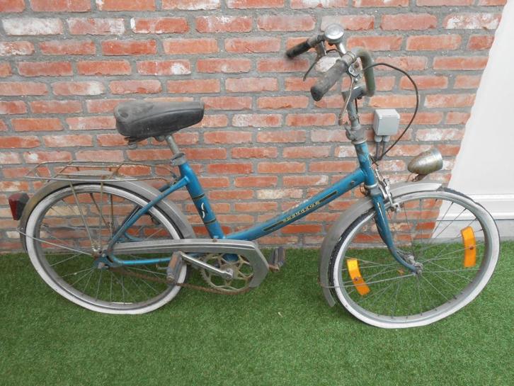 Leuke oude retro vintage Peugeot fiets, kan eigenlijk al als kind van 10 jaar of als een volwassen mee gereden worden dankzij de lange regelbare stuur en zadel pen. Banden zijn te vervangen (maat 26" denk ik ?) voor de rest kuisen, smeren en rijden.
