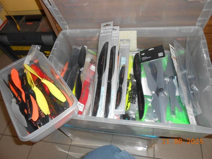 vliegtuigprops(schroeven).van klein naar groot,tot 28 cm.Inbegrepen 8 DJI props 9¨/9443, links en rechts draaiend,(4 links en 4 rechts) met zelftappende draadschroef , geschikt voor DJI brushless motor 2212/920 KV.In totaal meer dan 120 props.Alles in 1 koop weg.Prijs 50 euro.