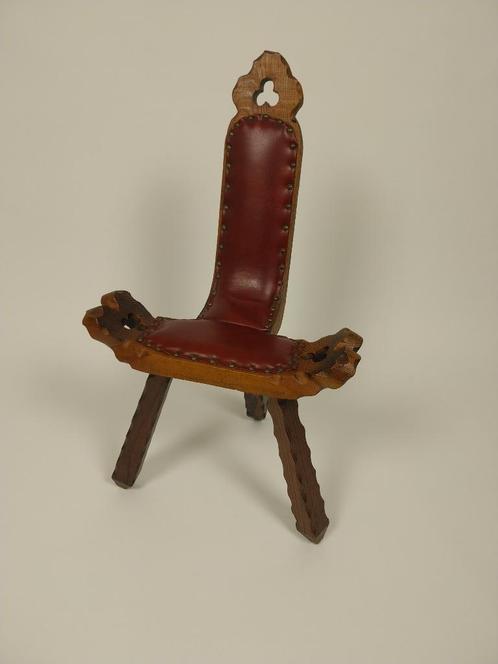Vintage Spaans brutalistisch houten stoeltje uit de jaren 60. Een zeer decoratief stuk met warm karaktervol hout en mooi houtsnijwerk.