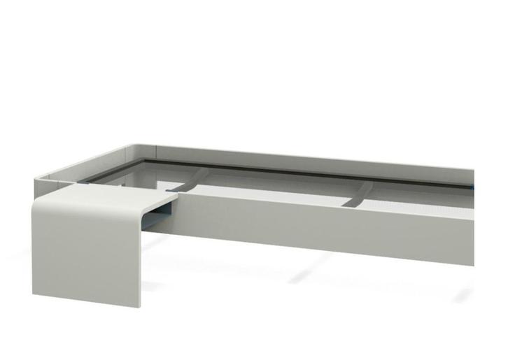 In Alpine witte lak 34.5 cm hoog, 90 op 210 cm met een nachttafel dat zowel links als rechts kan geplaatst worden.