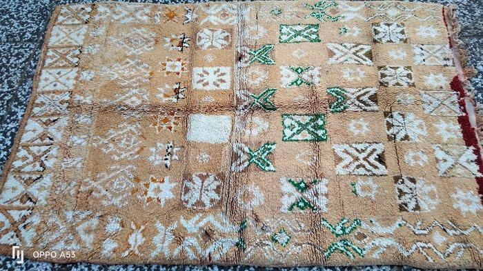 Deze vintage wollen op wollen Berber tapijt is een ware afspiegeling van Marokkaanse vakmanschap, bekend om zijn weelderige textuur, minimalistische esthetiek en diepe culturele betekenis. Met de hand geweven door de stammen in het Atlasgebergte, draagt dit tapijt een erfgoed van traditie, waardoor het een zeer gewild stuk is in zowel moderne als klassieke interieurs.