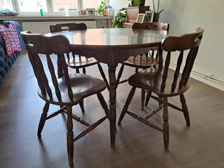 Gebruikssporen aanwezig bij zowel de tafel als de stoelen.