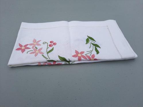 vierkant wit tafelkleedje met kleurrijke bloemen als borduursel; katoen; afmetingen : 62 cm x 62 cm; in perfecte staat; af te halen in Mortsel of Knokke; kan desnoods opgestuurd worden op kosten van de koper