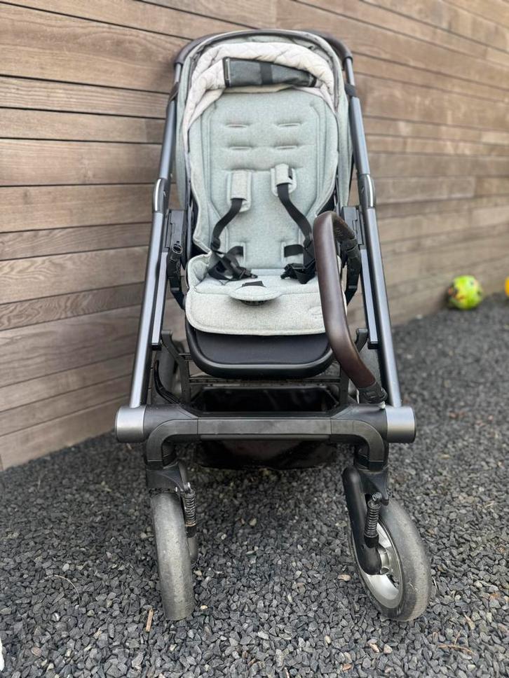 Komt samen met adapter voor maxi cosi en luiertas in zelfde stof en voetenzak in zelfde stof, regenkap