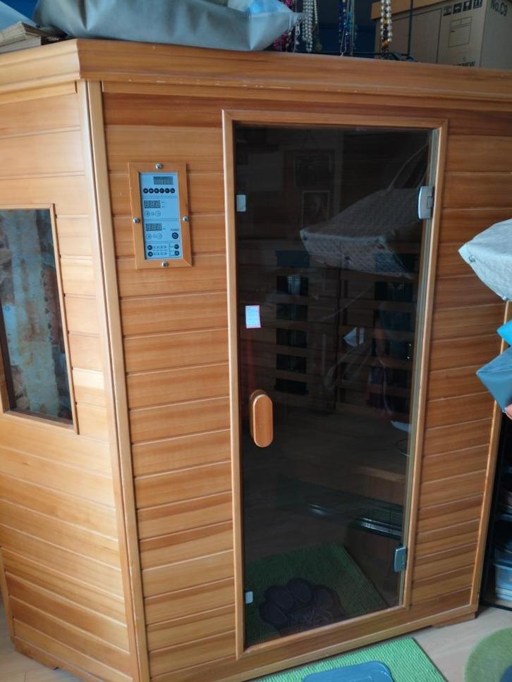 Wegens plaatsgebrek, logeerkamer voor de kleinkinderen, verkopen wij onze infraroodsauna, zo goed als nieuw. Met USB ingang, lichttherapie, radio. Ligplaats voor 2 personen. Makkelijk op te zetten. Verbruikt evenveel 'als een half uurtje strijken.