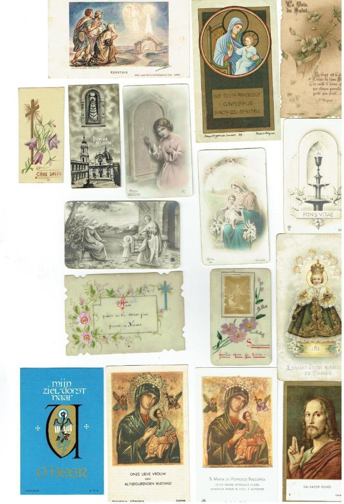 Lot van 16 devotieprentjes ( tss 1902 en 1966 ), waaronder 2 missieprentjes en 1 priesterwijding, sommige met bedrukking op achterzijde, andere beschreven.