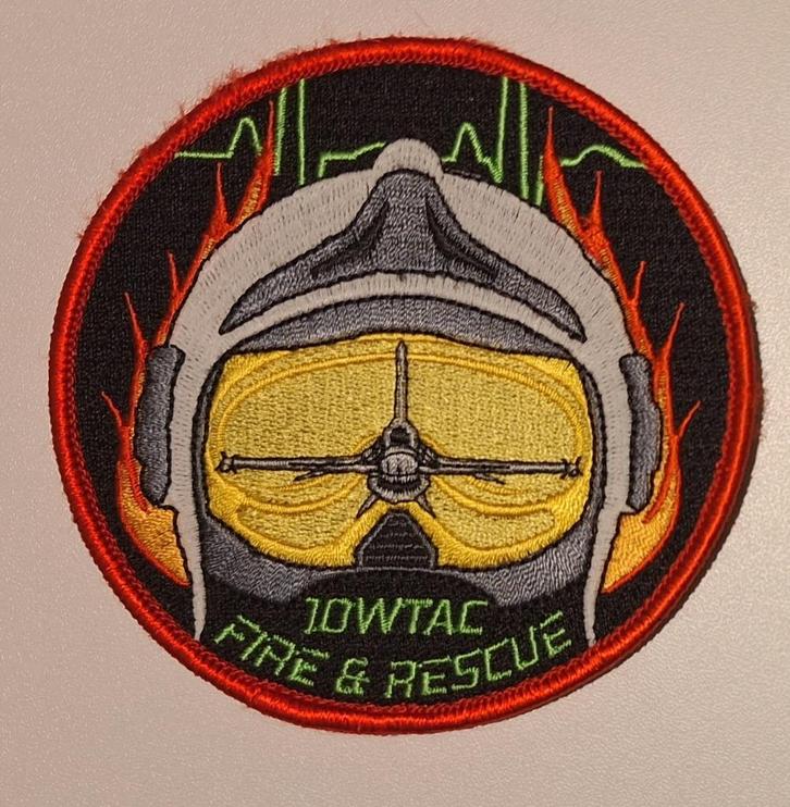 Badge van de brandweer van de 10 wing te koop. Op de 3e foto van de aankondiging is alleen de badge ontworpen door de rode pijl: variant met de groene tekst en de F-16.