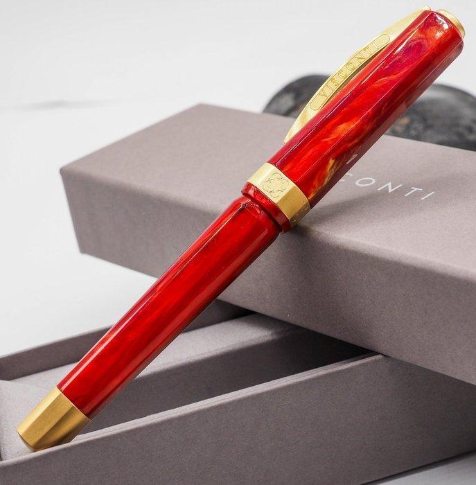 Visconti Opera Gold KP42-01-FPM vulpen in geswirld rood acrylglas met goudvlammen, staalpennetje verguld met geelgouden coating en geborstelde gouden afwerking, geleverd met originele doos.